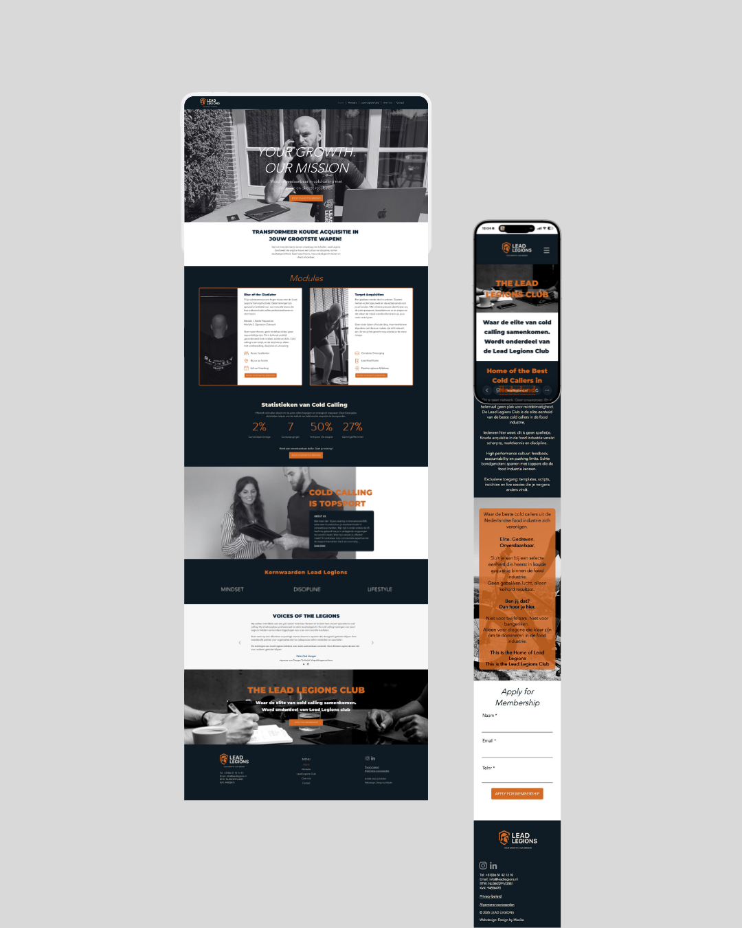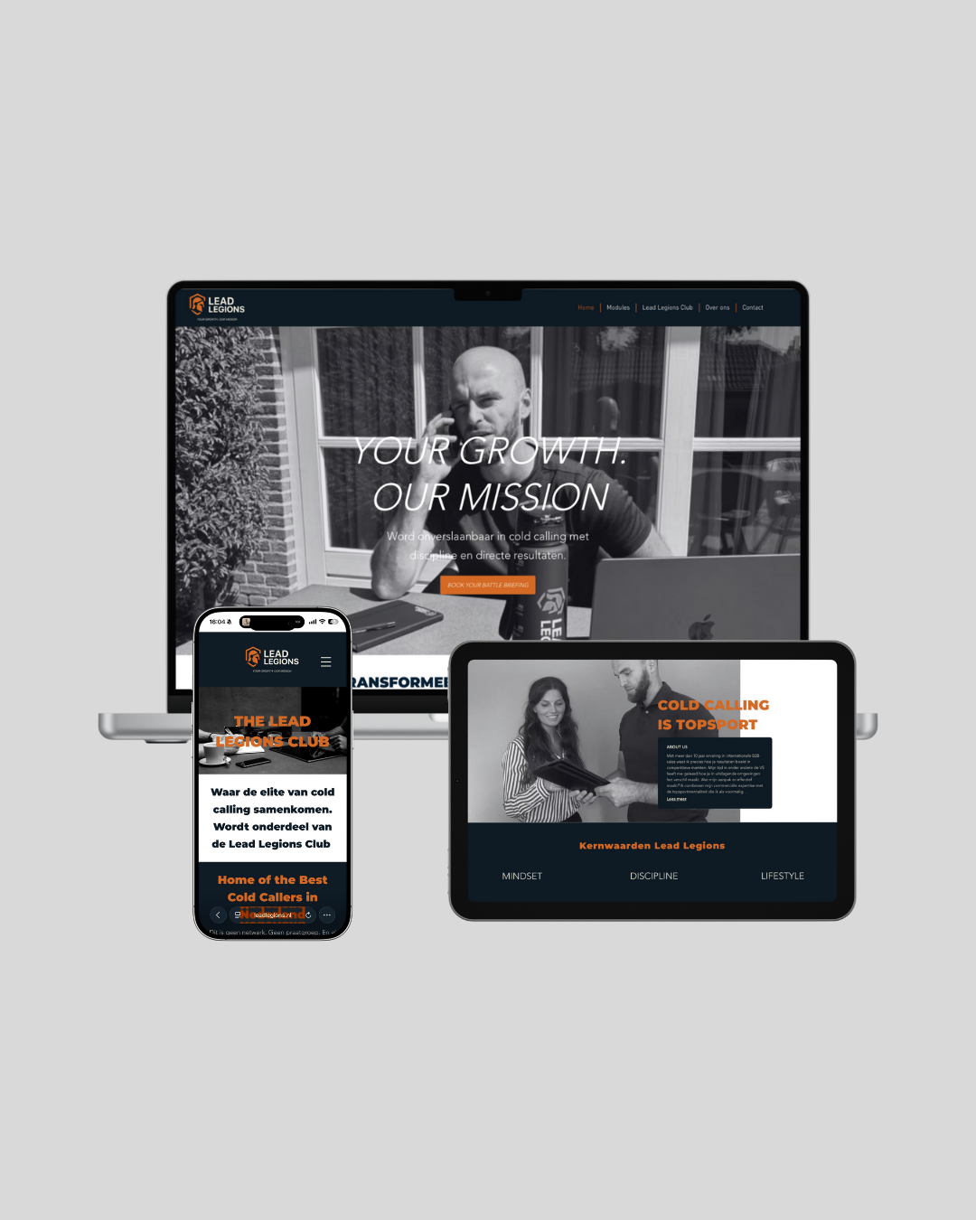Webdesign voor www.leadlegions.nl Met een strak en modern design heb ik gewerkt aan een website die niet alleen mooi oogt, maar ook resultaatgericht is. • Heldere structuur • Professionele uitstraling • Gericht op leads en groei